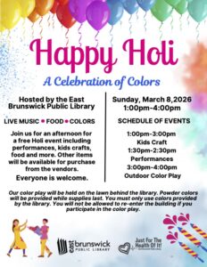 | FreeSAMHIN will partner with East Brunswick Public Library and will have a presence at the annual Holi celebration event at the East Brunswick Public Library, East Brunswick, New Jersey. Arti Katoch of East Brunswick Public Library is planning and coordinating this event. Our dedicated team of volunteers will be on-site to promote mental health and wellness, increase mental health awareness and decrease stigma, as well as to offer mental health screenings. We invite you to come and enjoy the Holi event and visit us with any questions regarding mental health and substance use. Free educational materials will be available for distribution!