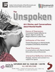 | FreeSouth Asian Mental Health Initiative and Network (SAMHIN) is partnering with the Indian Cultural Society of East Brunswick and the East Brunswick Public Library to present an innovative program aimed at increasing awareness and fostering acceptance of mental health within the South Asian community.